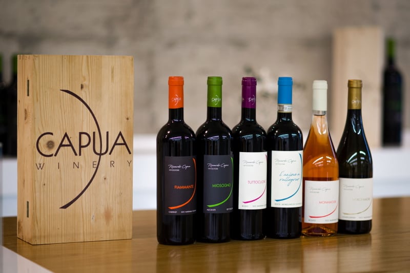 In the six hectares of vineyard with very high planting density, with eight thousand vines per hectare, are grown Alicante, Merlot, Cabernet Franc and Cabernet Sauvignon, Petit Verdot, Chardonnay and Sangiovese. Tutte queste varietà vengono portate con grande cura alla loro giusta maturazione, raccolte e vinificate separatamente, nonché elevate in legni pregiatissimi ed infine sapientemente assemblate per creare il TuttoCuore, il Fiammante, il DolceAmore, il Monamour, L’Anime a Rallegrar ed il Miosogno.